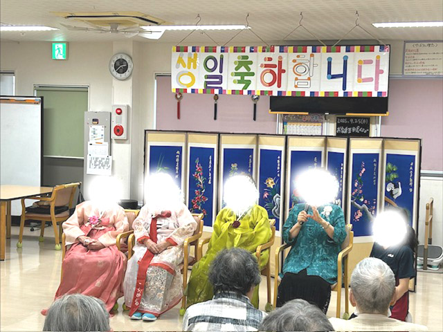 9月・10月お誕生日会 2025.09.26 イベント 9月25日に9月・10月お生まれの利用者様のお誕生日会を開催しました。 いつものように韓服(ハンボク)を着ていただき、理事長からお祝いの言葉とクンジョル(大礼)させていただきました。 また、お孫様もお祝いに駆けつけてくださり、ハルモニにお祝いの言葉を述べられました。 異郷日本での生活は大変な苦労だったと思います。その苦労の上に、今の私たちがいることに感謝し、皆さまが末永く健やかに暮らしていただけるよう今後もご支援させていただきます。 Tweet Share Hatena Pocket RSS feedly Pin it 投稿者: sanboram イベント 敬老の日前の記事 秋月(チュソク)の昼食次の記事