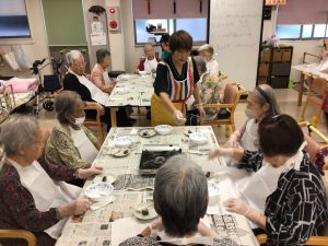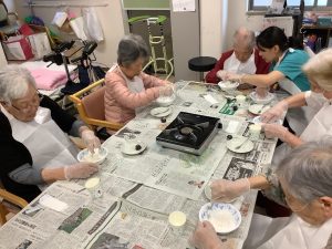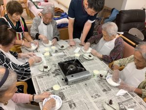 サンボラムではおやつレクで、利用者さまにつくっていただき、召し上がっていただきました。皆さま、昔よく法事でつくったと懐かしがっておられました。