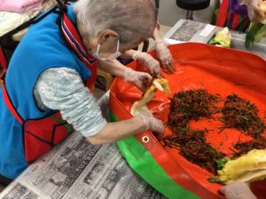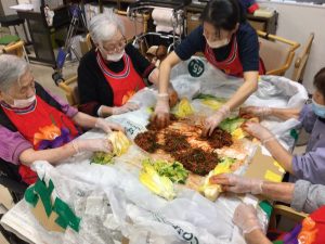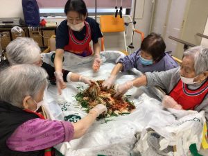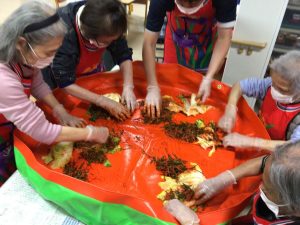 サンボラムでは長らくコロナ禍でできませんでしたが、久しぶりに利用者様にキムジャンをしていただきました。