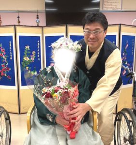 1月・2月お誕生日会 2026.01.29 イベント 1月26日に1月と2月のに誕生日を迎えられる利用者様5名のお誕生日会を開催しました。その中のお一人が数えで100歳を迎えられましたので、お花をプレゼントさせていただきました。「100歳なんて恥ずかしいから言わんといて―」と照れておられた可愛いハルモニです。差別や貧困で大変な苦労をされてこられた方々です。皆さまのご苦労の上に、今の私たちがいることに感謝し、少しでもその恩返しができるよう、これからも努めて参ります。 Tweet Share Hatena Pocket RSS feedly Pin it 投稿者: sanboram イベント 韓国大統領との懇親会に出席しました前の記事